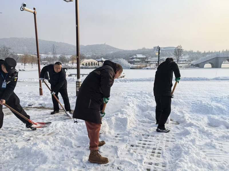 同時,根據(jù)市國投公司統(tǒng)一部署,我公司選派人員組成應(yīng)急除雪小隊,奔赴龍馬湖參與全市統(tǒng)一除雪行動,經(jīng)過數(shù)小時的連續(xù)奮戰(zhàn),龍馬湖周邊主要道路積雪被清理干凈,為市民出行提供了有力保障,充分展現(xiàn)了水務(wù)人在關(guān)鍵時刻拉得出、頂?shù)蒙系倪^硬作風(fēng)。